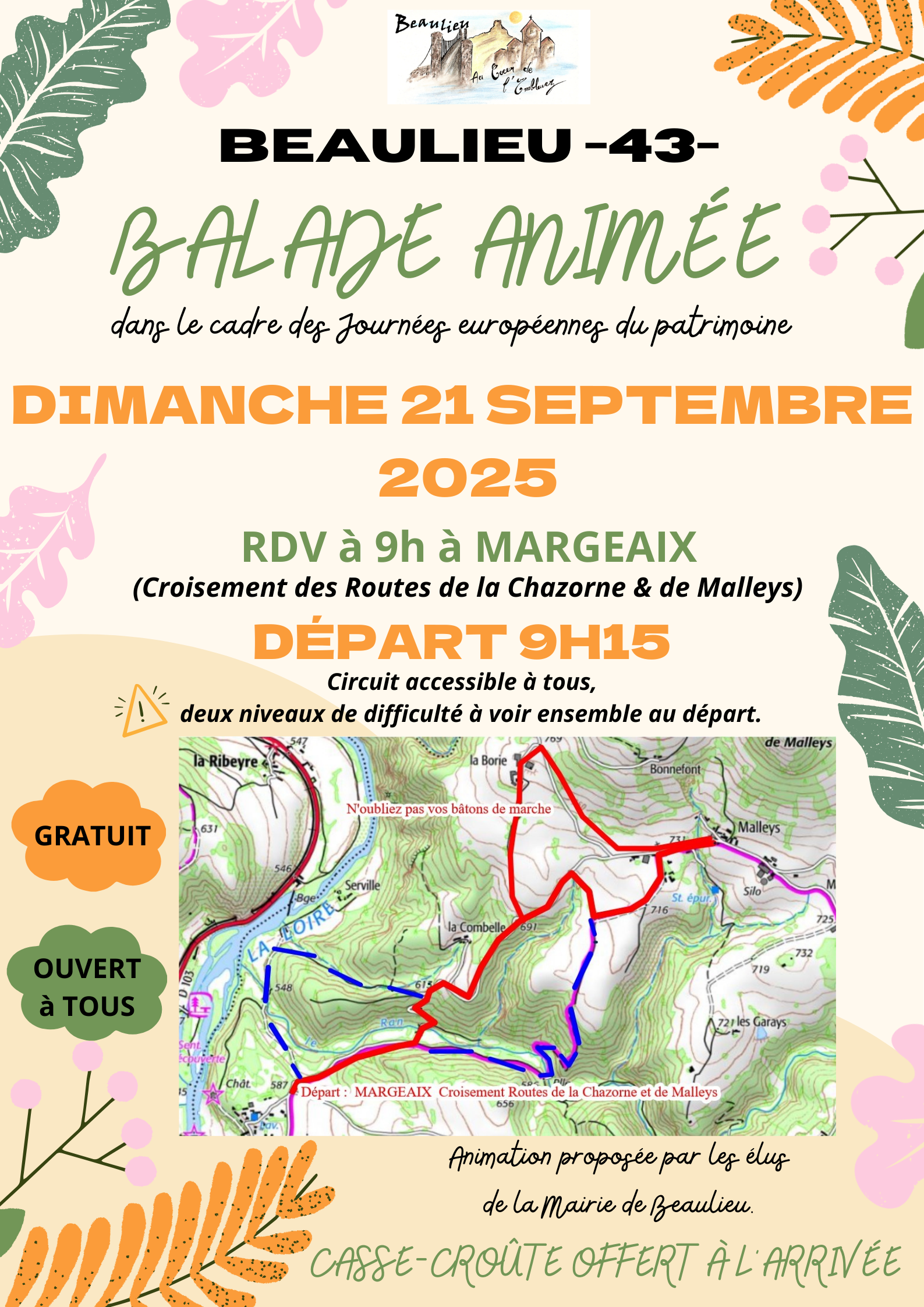 La commune de Beaulieu vous invite à une balade dans le cadre des journées du patrimoine.