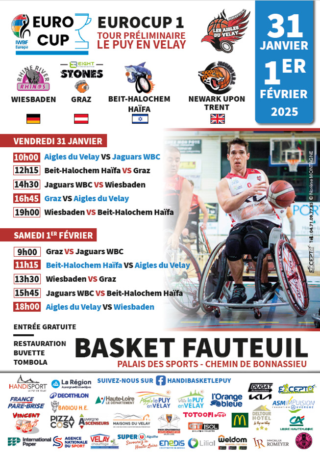 Les Aigles du Velay accueillent les 31 janvier et 1er février un tour préliminaire d’EuroCup 1 au Palais des Sports du Puy en Velay