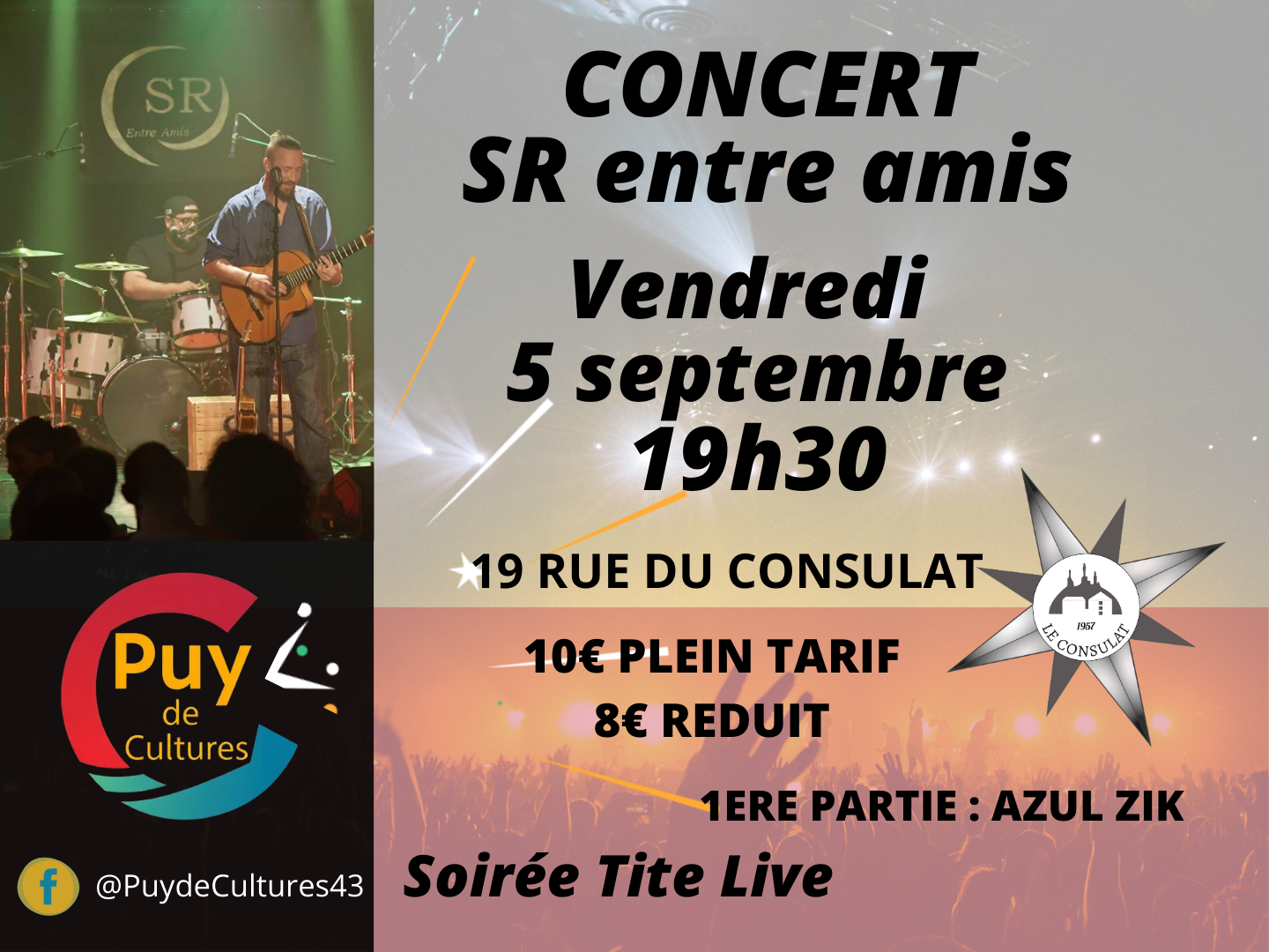 En deuxième partie nous avons l’honneur d’accueillir le groupe SR entre amis qui commence à se faire connaitre dans la région et plus (ils ont d’ailleurs participé au festival Loire en Zic à Brives-Charensac et en 2025 aux nuits de Saint-Jacques au Puy-en-Velay).