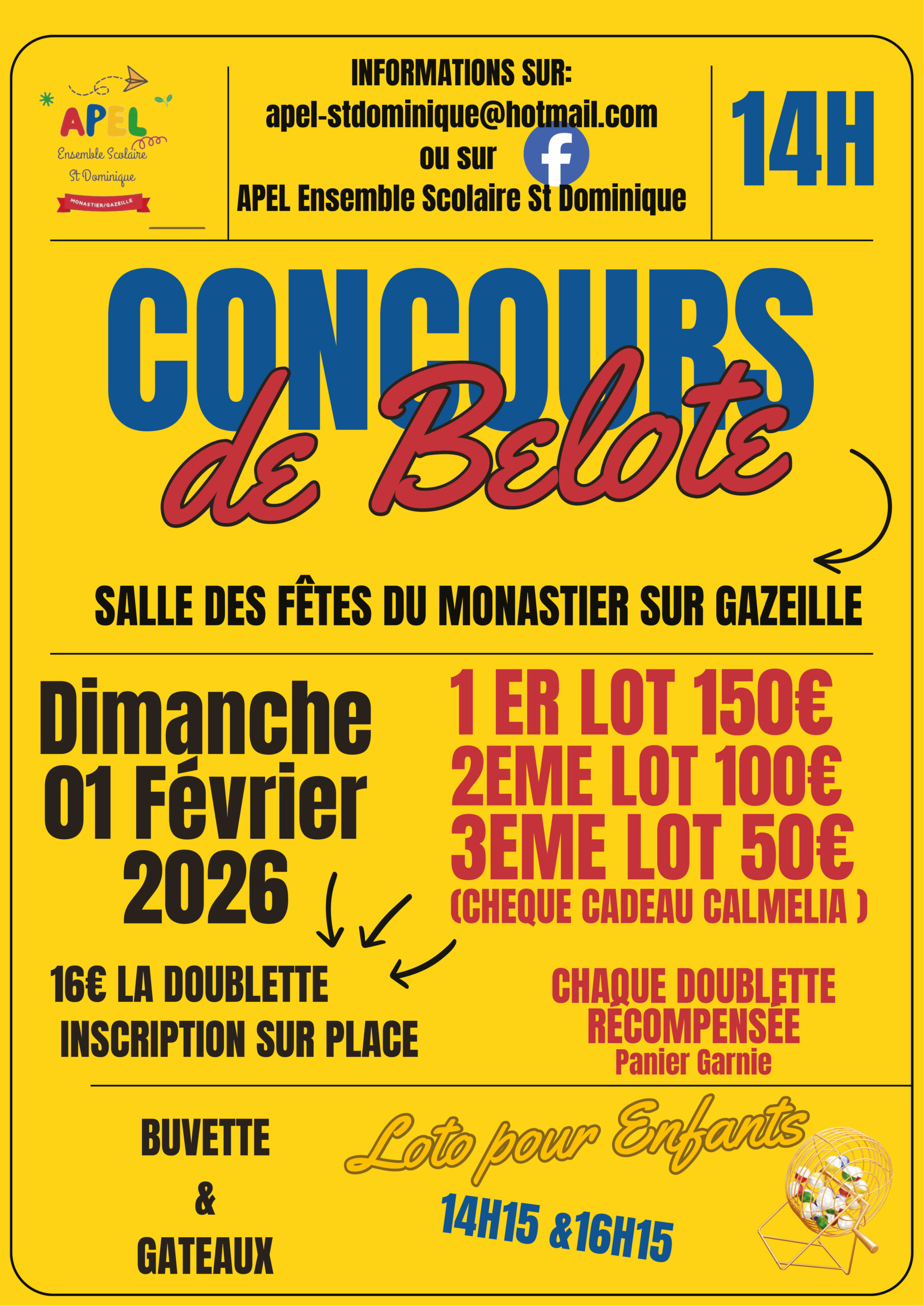 Concours annuel de Belote organisé par l’APEL de l’école St Dominique.