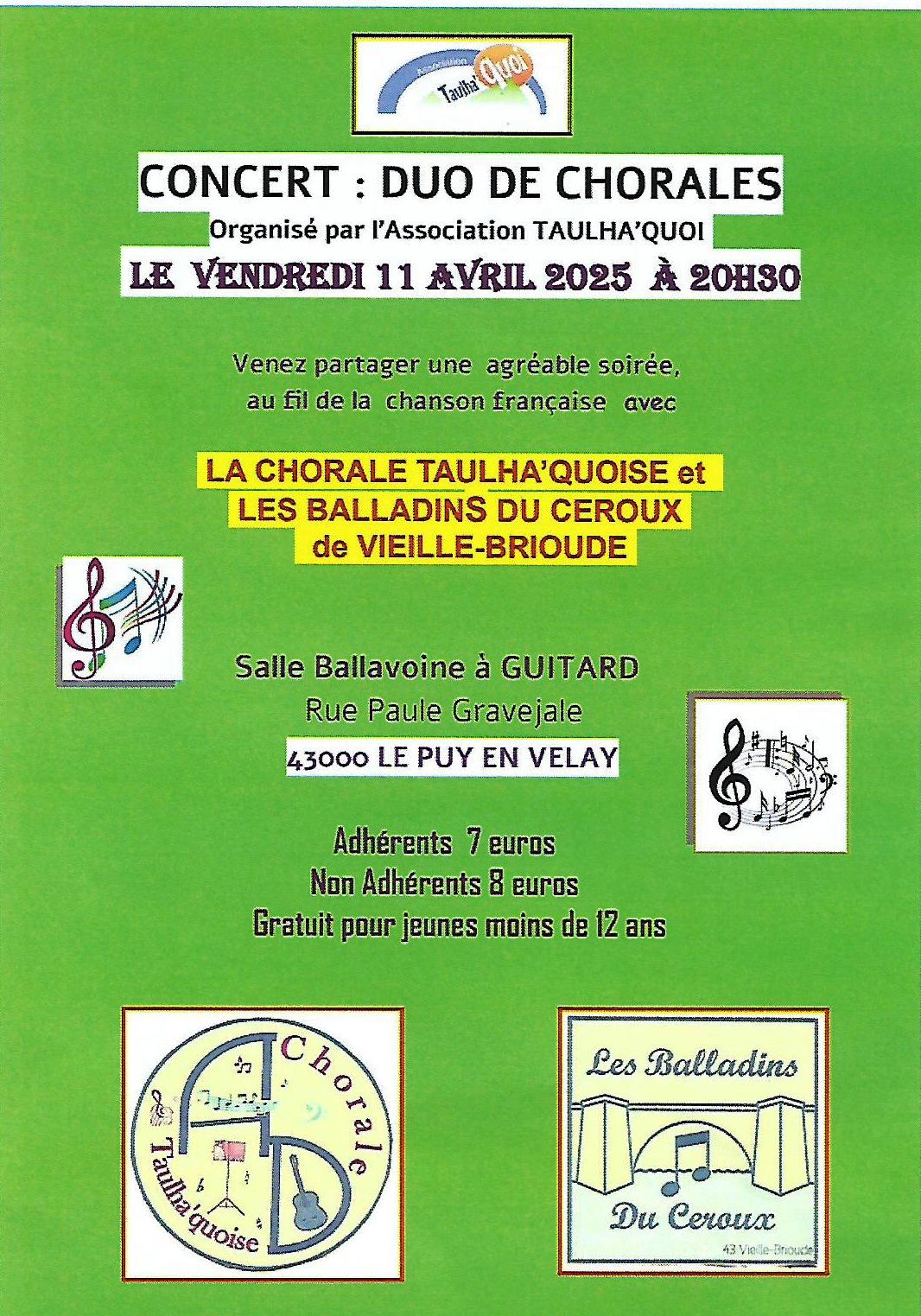 présenté par la Chorale Taukha’Quoise et les Balladins du Ceroux de Vieille Brioude.