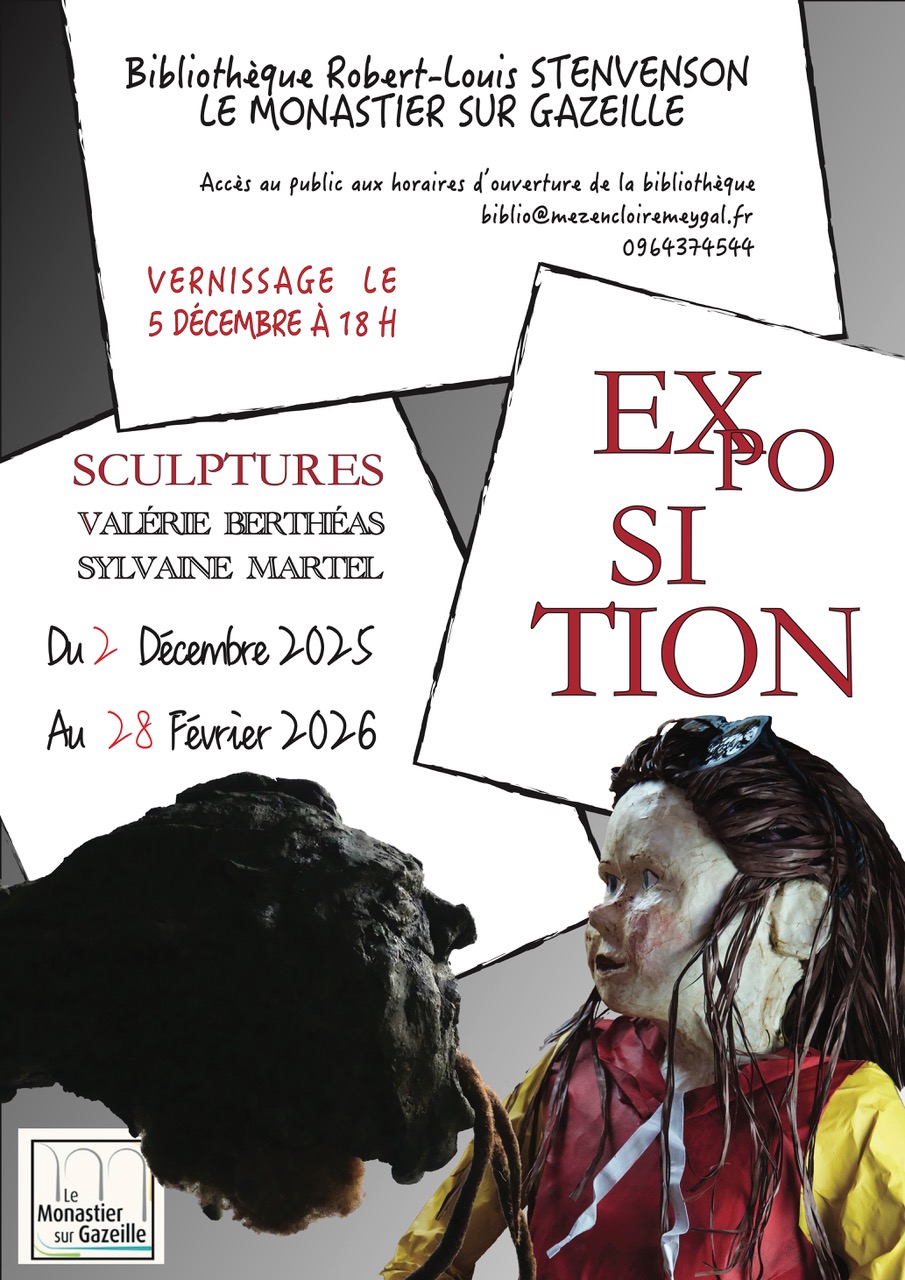 Venez découvrir deux univers sculptés très différents à la bibliothèque du Monastier sur Gazeille.