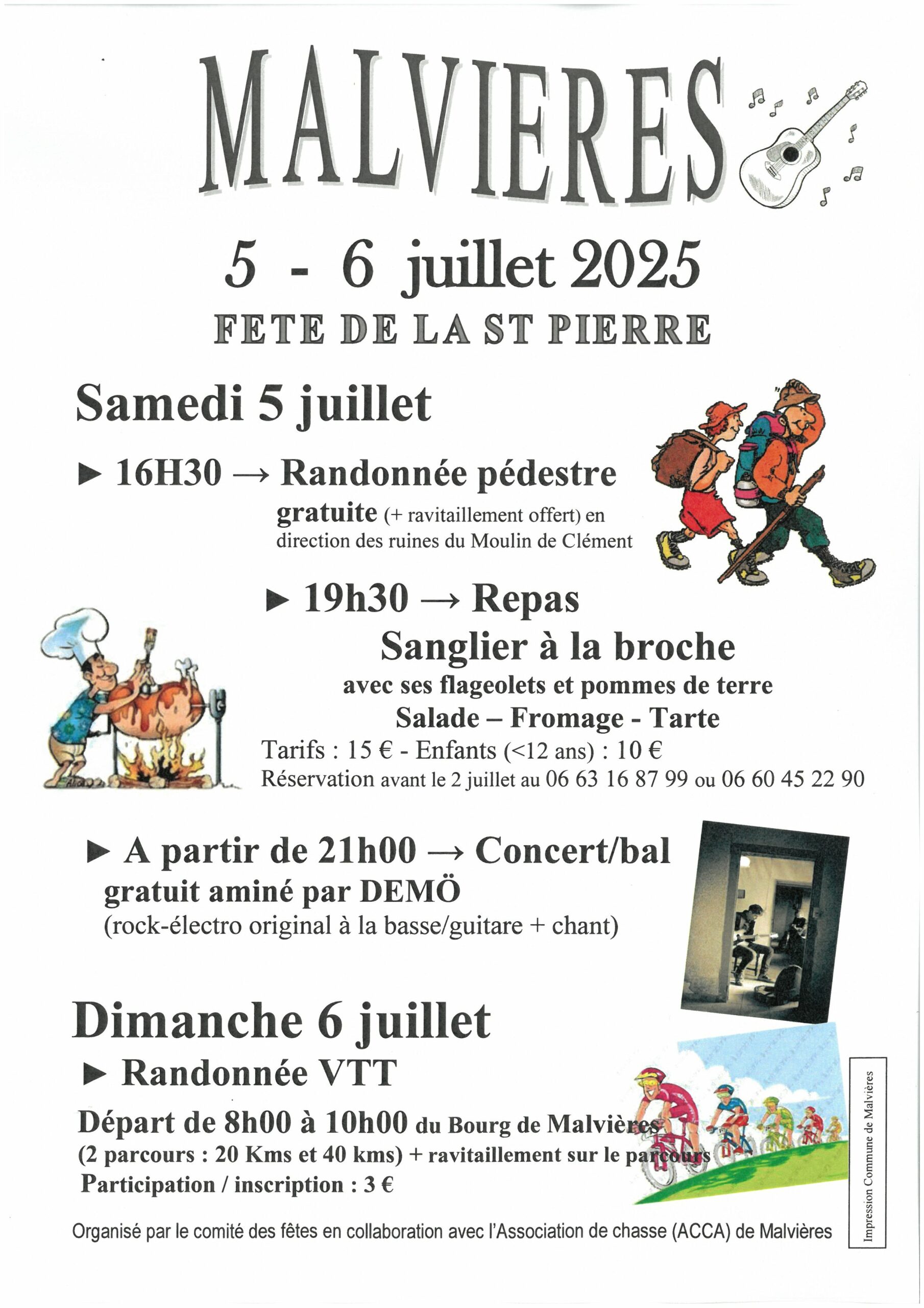 20h00 : repas sanglier à la broche avec ses flageolets et pommes de terre – salade – fromage – dessert – tarif 15€ (enfants 10 €) – Réservation 06 60 45 22 90 ou 06 63 16 87 99.