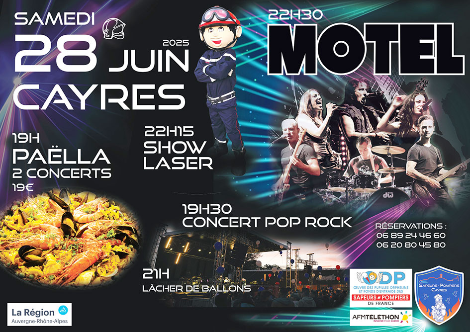 Show laser à 22h15 et concert du groupe Motel à 22h30.