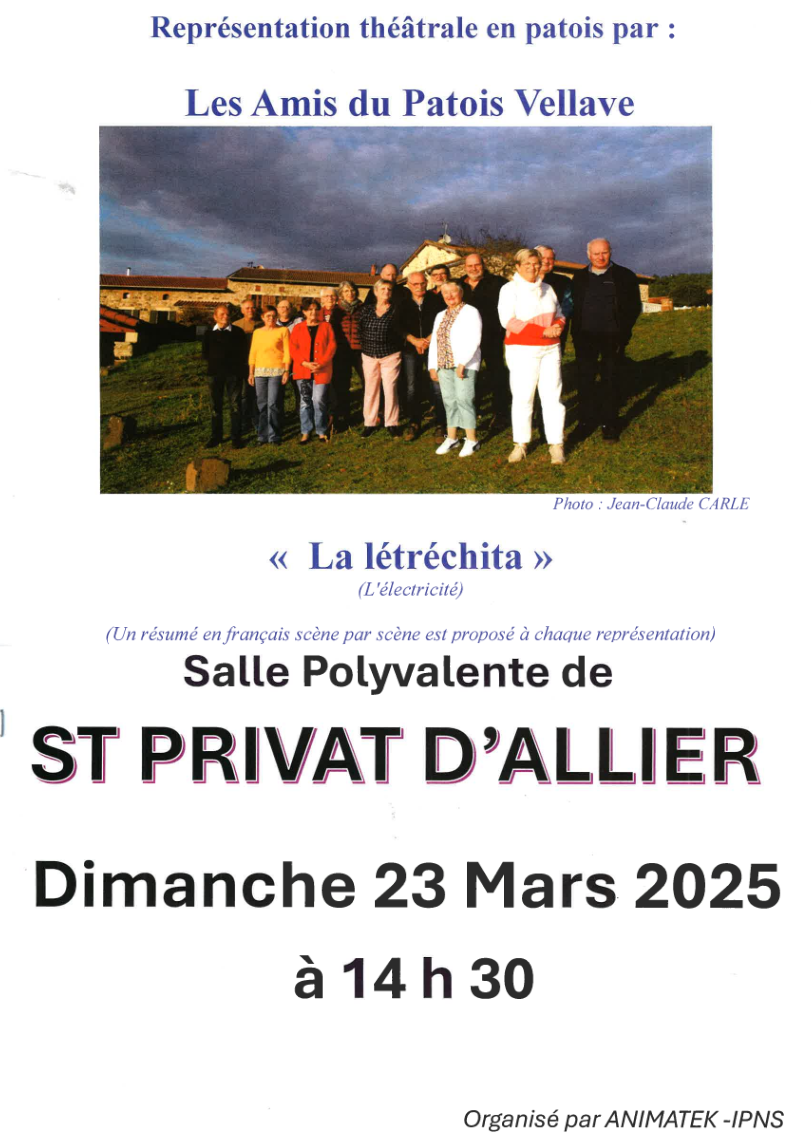 L’association Animatek vous invite à découvrir une pièce de théâtre en patois vellave, intitulée « La Létréchita » (l’électricité).