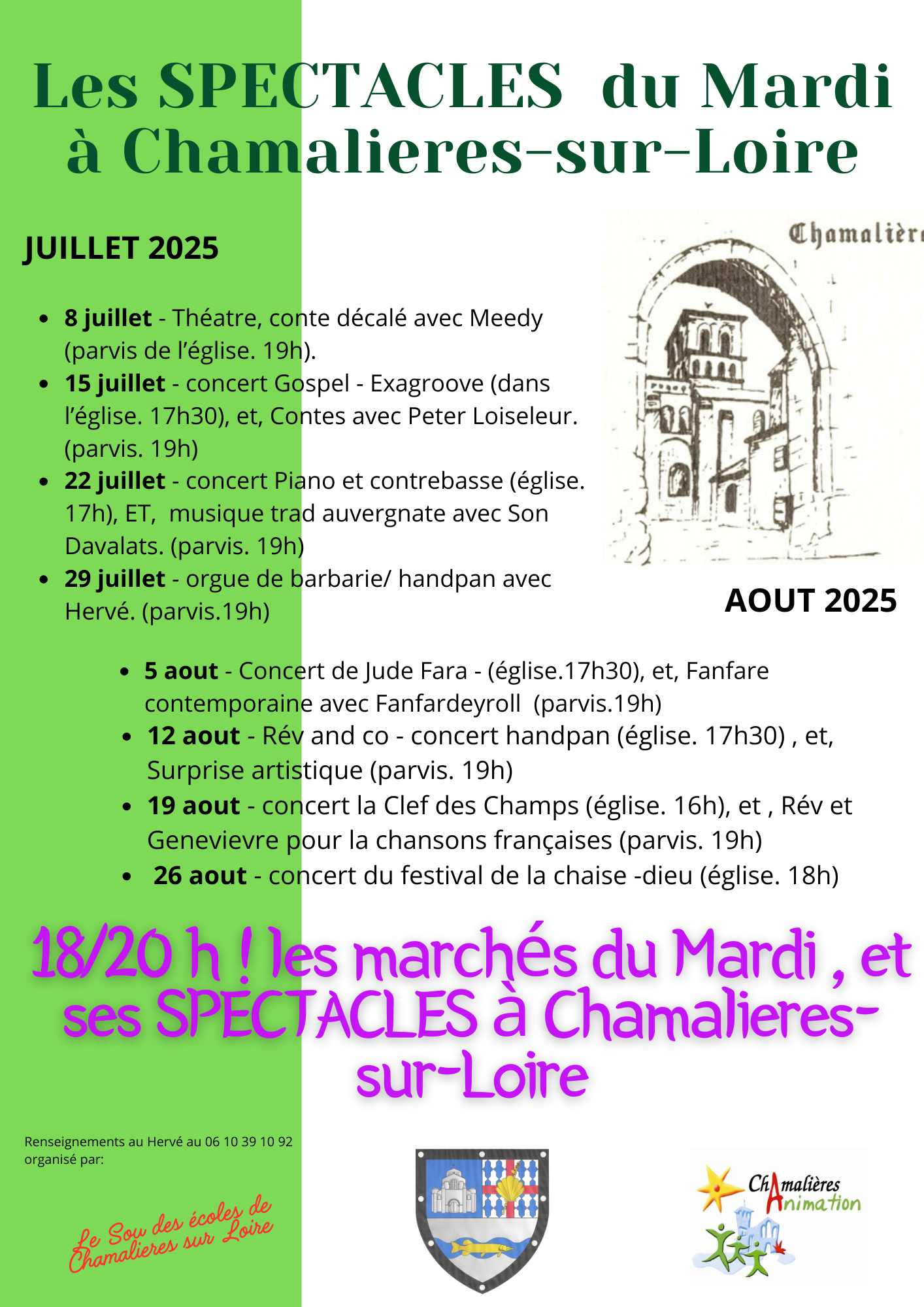 Concerts dans l’église romane, ou sur le parvis devant l’église de Chamalières sur Loire, on vous accueille aux marchés d’été.
