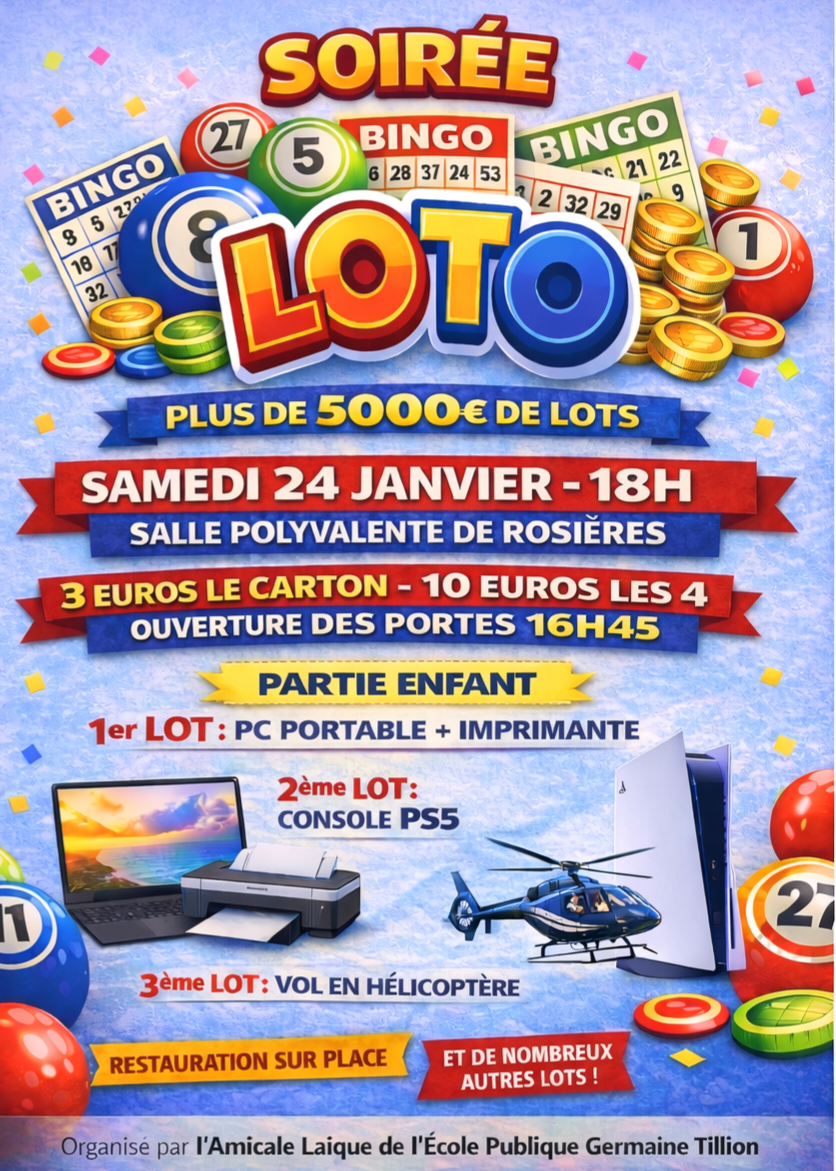 Loto organisé par l’amicale Laïque de l’école Germaine Tillion.