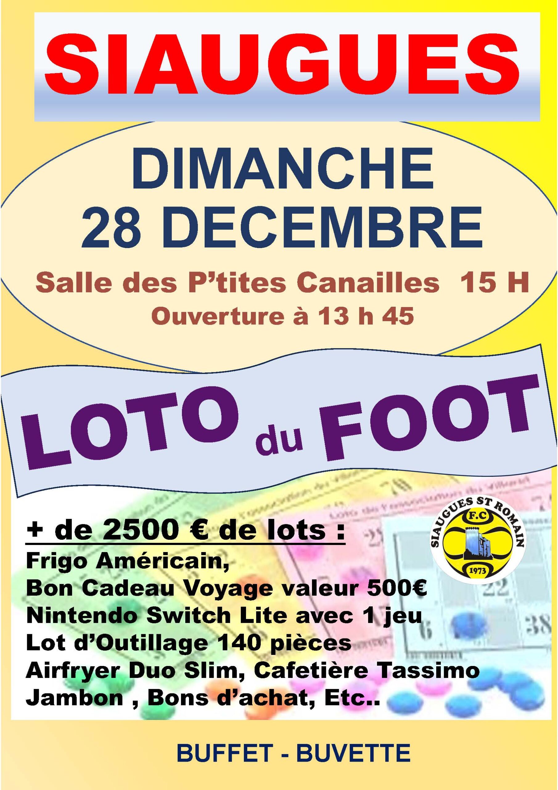 Le traditionnel loto du F.C.S. aura lieu le Dimanche 28 Décembre 2025 à partir de 15h dans la salle des « Petites Canailles » de Siaugues.