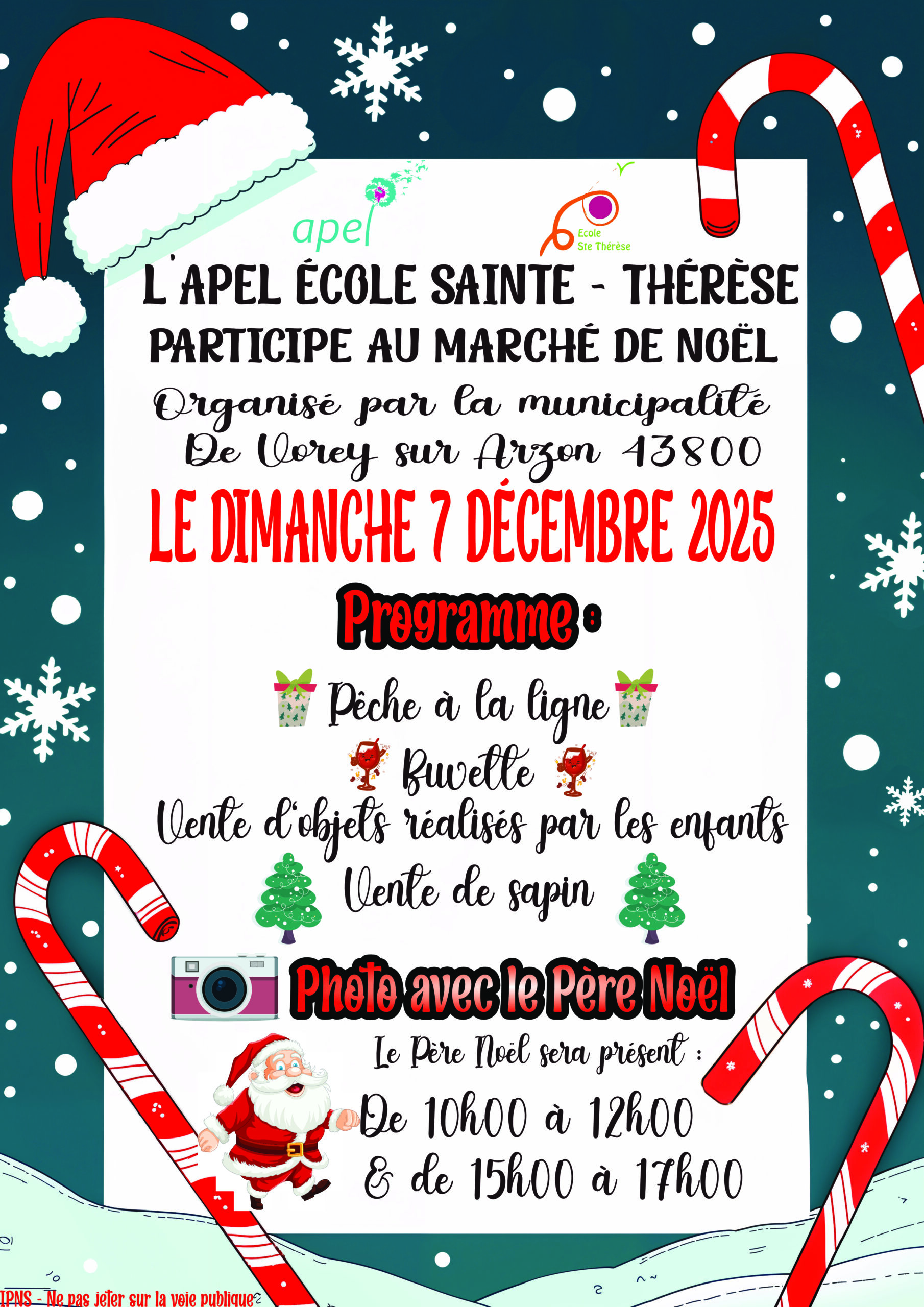 Participation de l’école Ste Thérèse au Marché de Noël avec différentes animations.