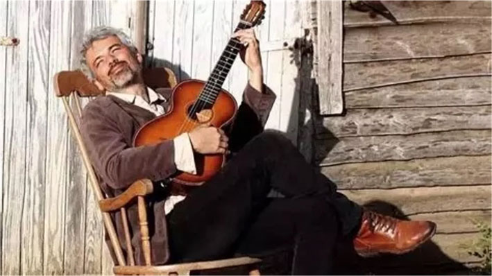Avec pour seul accompagnement sa guitare acoustique, Nicolas fait « marrer » son auditoire.