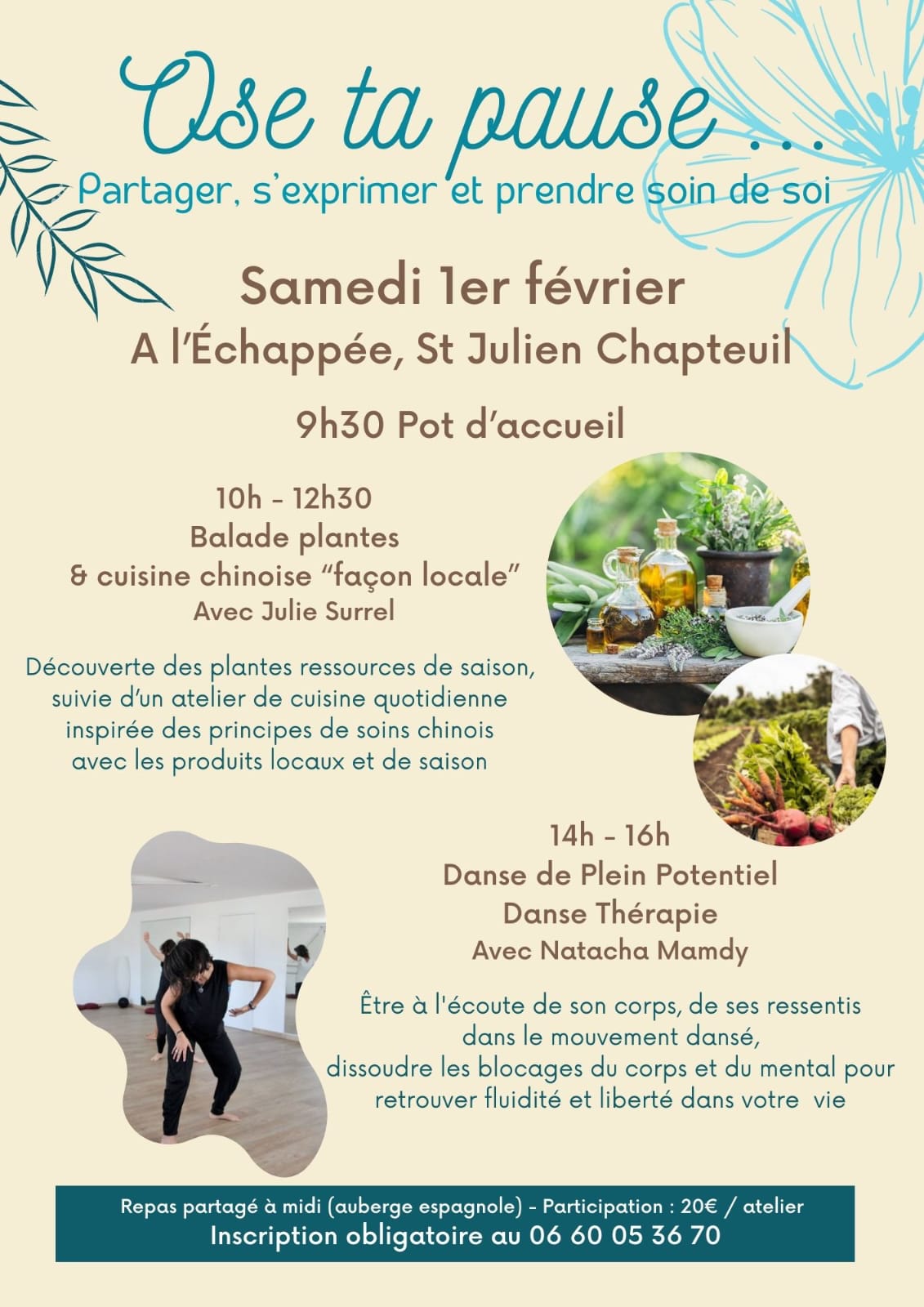 • de 14h à 16h : Danse de plein potentiel / Danse thérapie avec Natacha Mamdy.