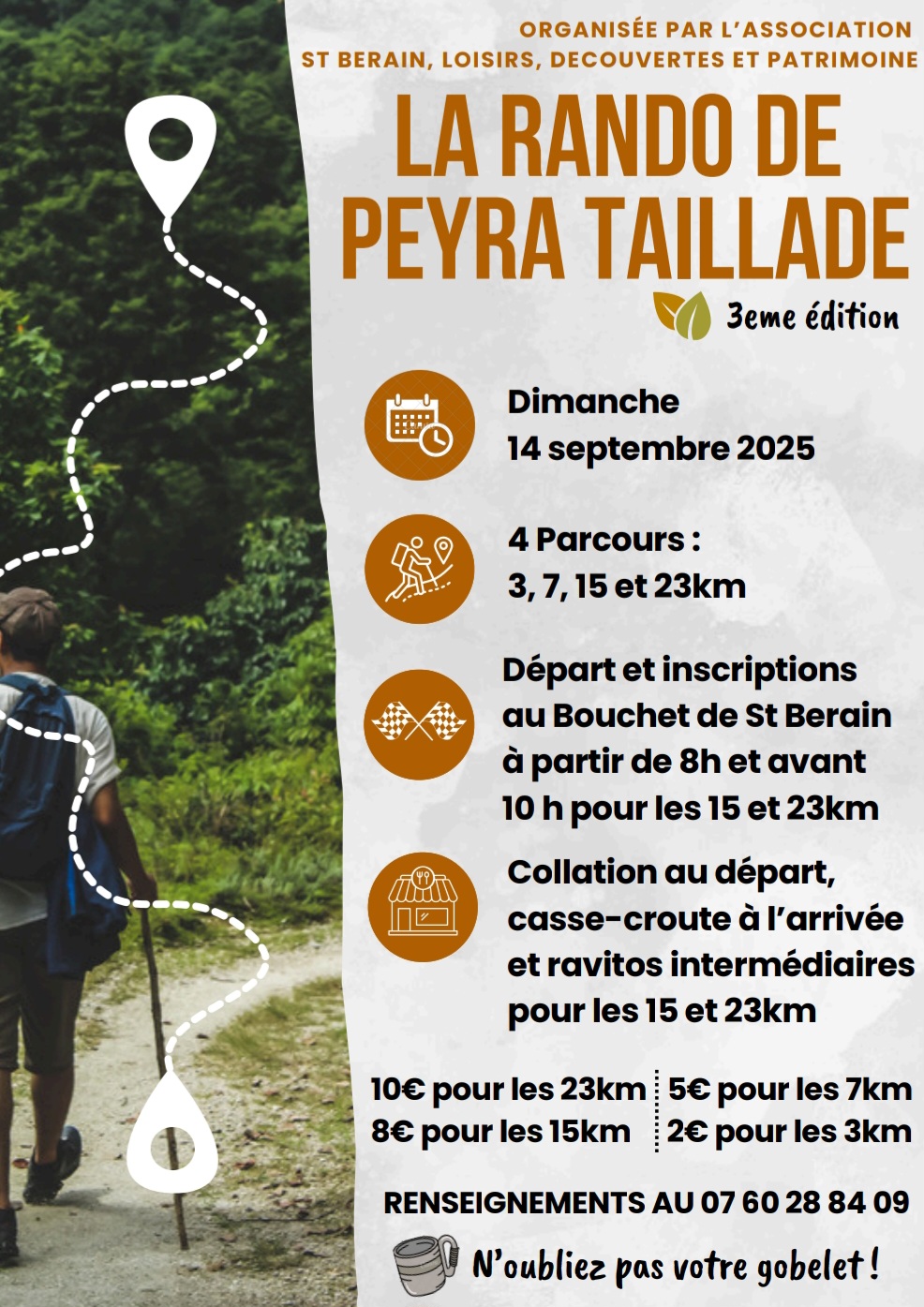 • Départ et inscriptions au Bouchet de St Bérain dès 8h (avant 10h pour les 15 et 23 km)