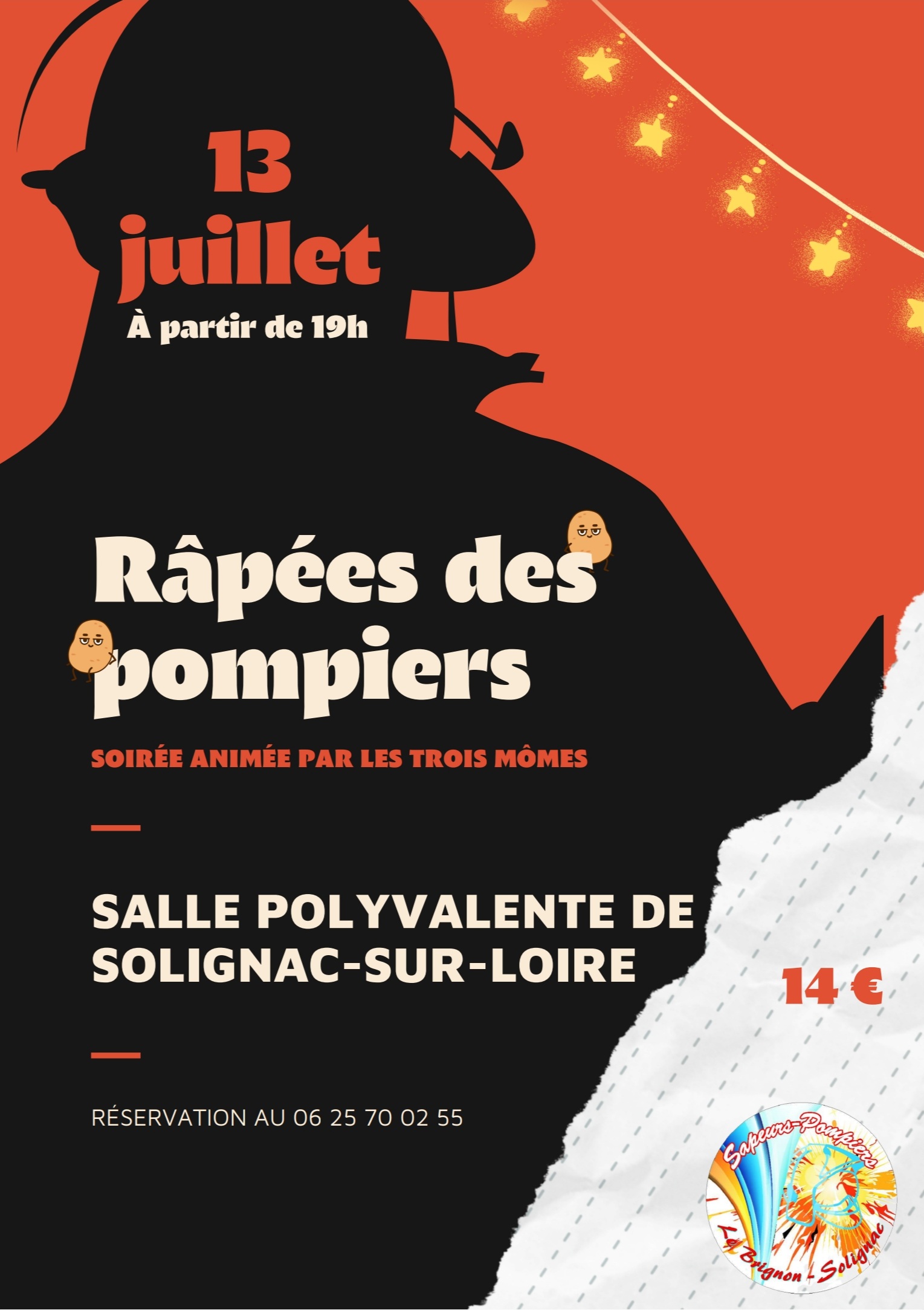 L’Amicale des Sapeurs Pompiers du Brignon-Solignac organise, dimanche 13 juillet 2025 à partir de 19 heures, sa traditionnelle râpée.