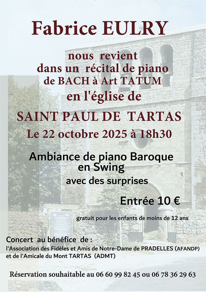 Concert au bénéfice de l’Association des Fidèles et Amis de Notre-Dame de Pradelles (AFANDP) et de l’Amicale du Mont Tartas (ADMT).