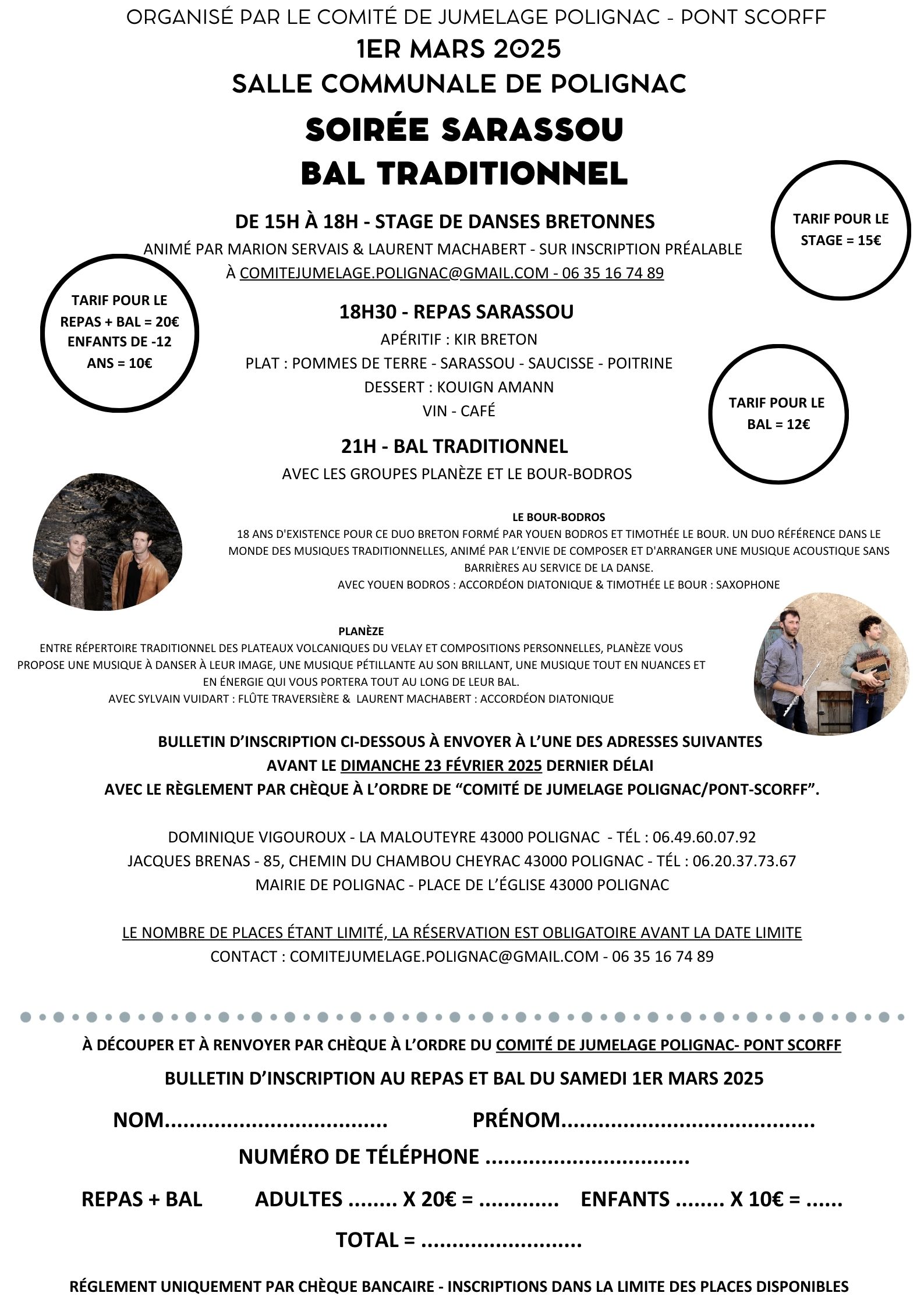 • De 15h à 18h : Stage de danses bretonnes sur inscription préalable à comitejumelage.polignac@gmail.com
