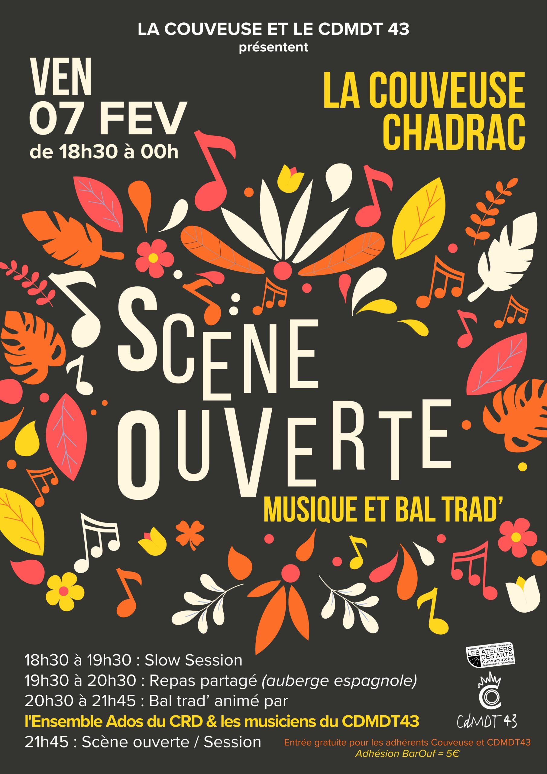 • 20h30 à 21h45 : BAL avec l’Ensemble Ados du CRD & les musiciens du CDMDT43