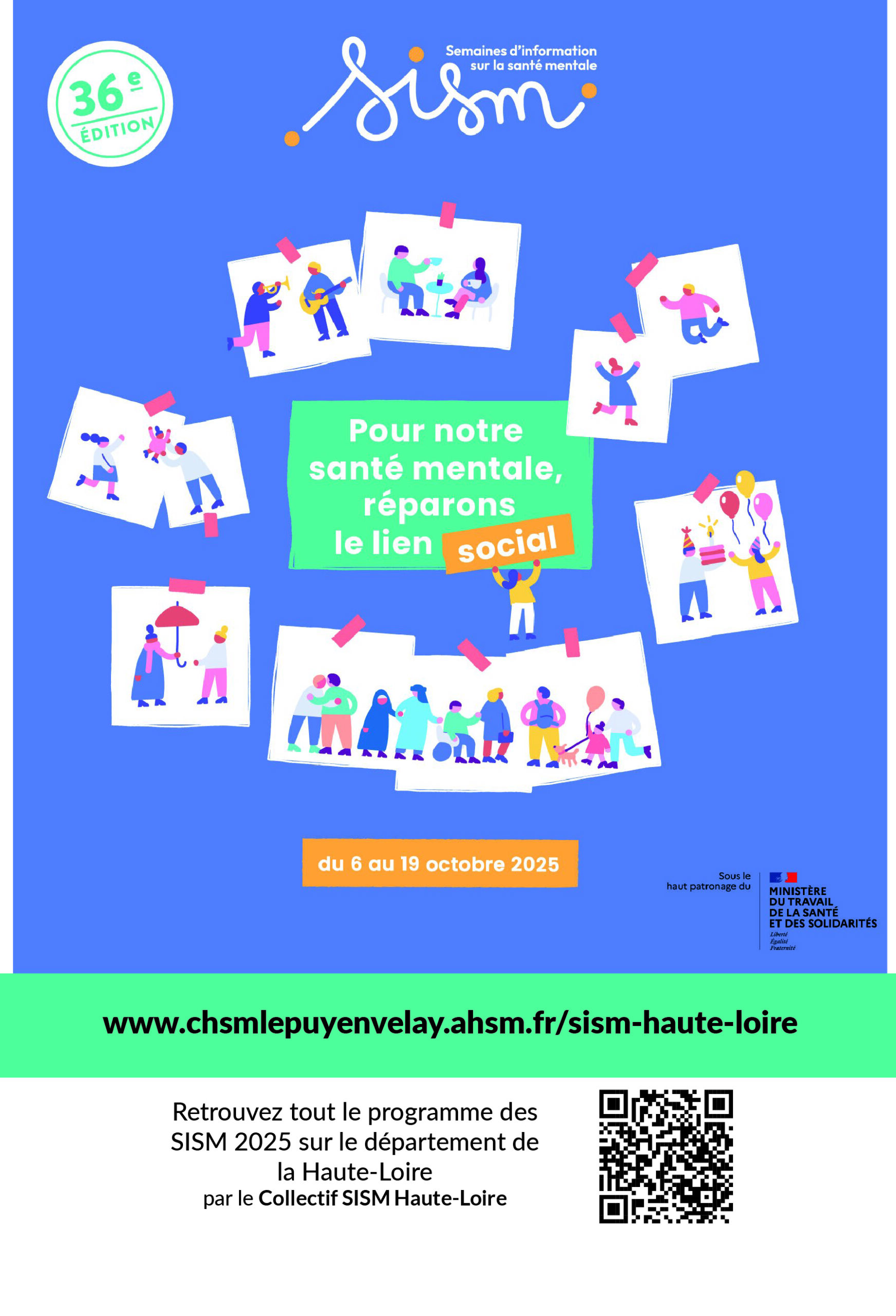 Le collectif SISM Haute-Loire participe à cette mobilisation nationale en proposant un riche programme, dont les actions sont à destination de tout type de public (adultes / jeunes / professionnels) sur diverses communes du département.