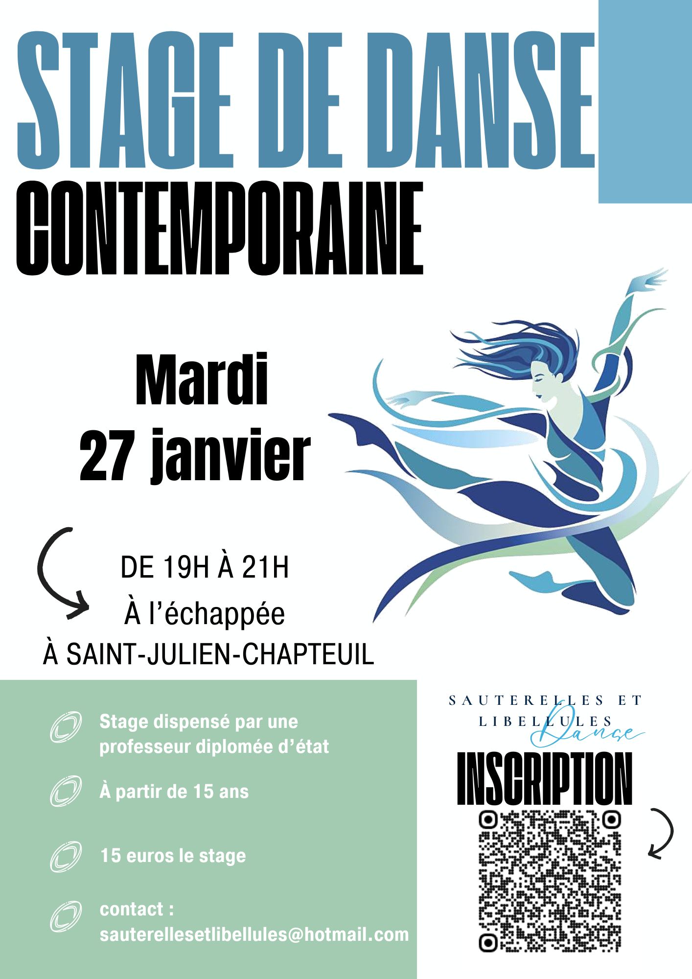 L’association de danse contemporaine de Saint-Julien-Chapteuil organise un nouveau stage de danse, à partir de 15 ans.