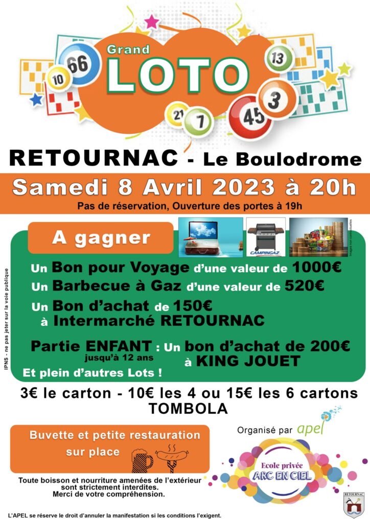 Organisé par les écoles catholiques. Plus de 3000 € de lots. Buvette et gâteaux sur place.