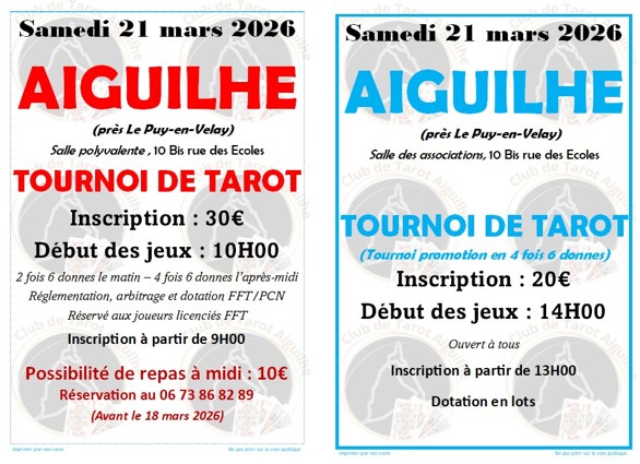 Le Club de Tarot d’Aiguilhe organise deux tournois de tarot.