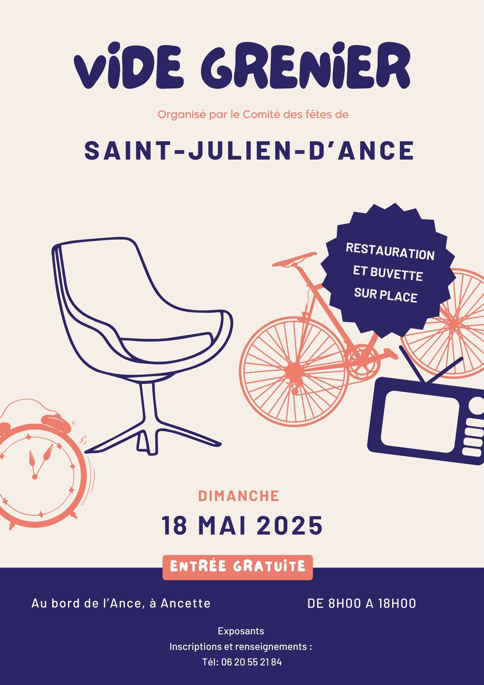 Affiche Vide grenier Brocante Illustratif Beige bleu orange
