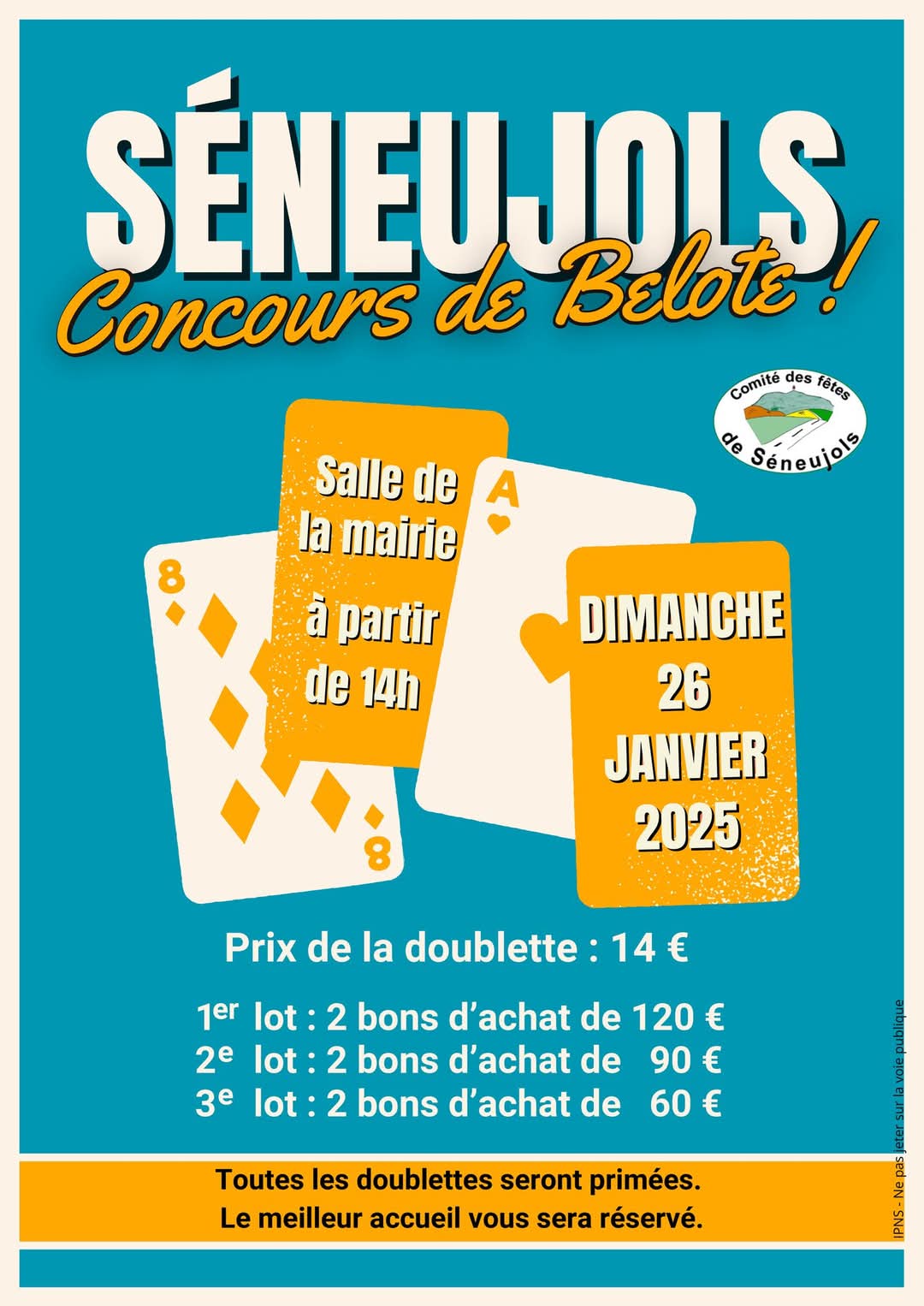 Concours de belote organisé par le Comité des fêtes de Seneujols.